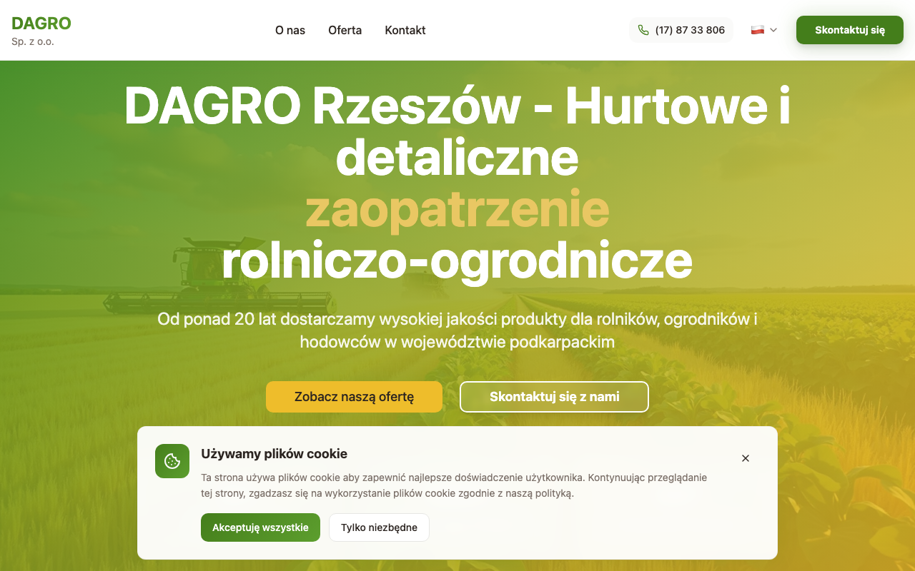 We designed and implemented a responsive website for DAGRO - an agricultural company from Rzeszów. The website presents the company offer, enables contact and is optimized for search engines.